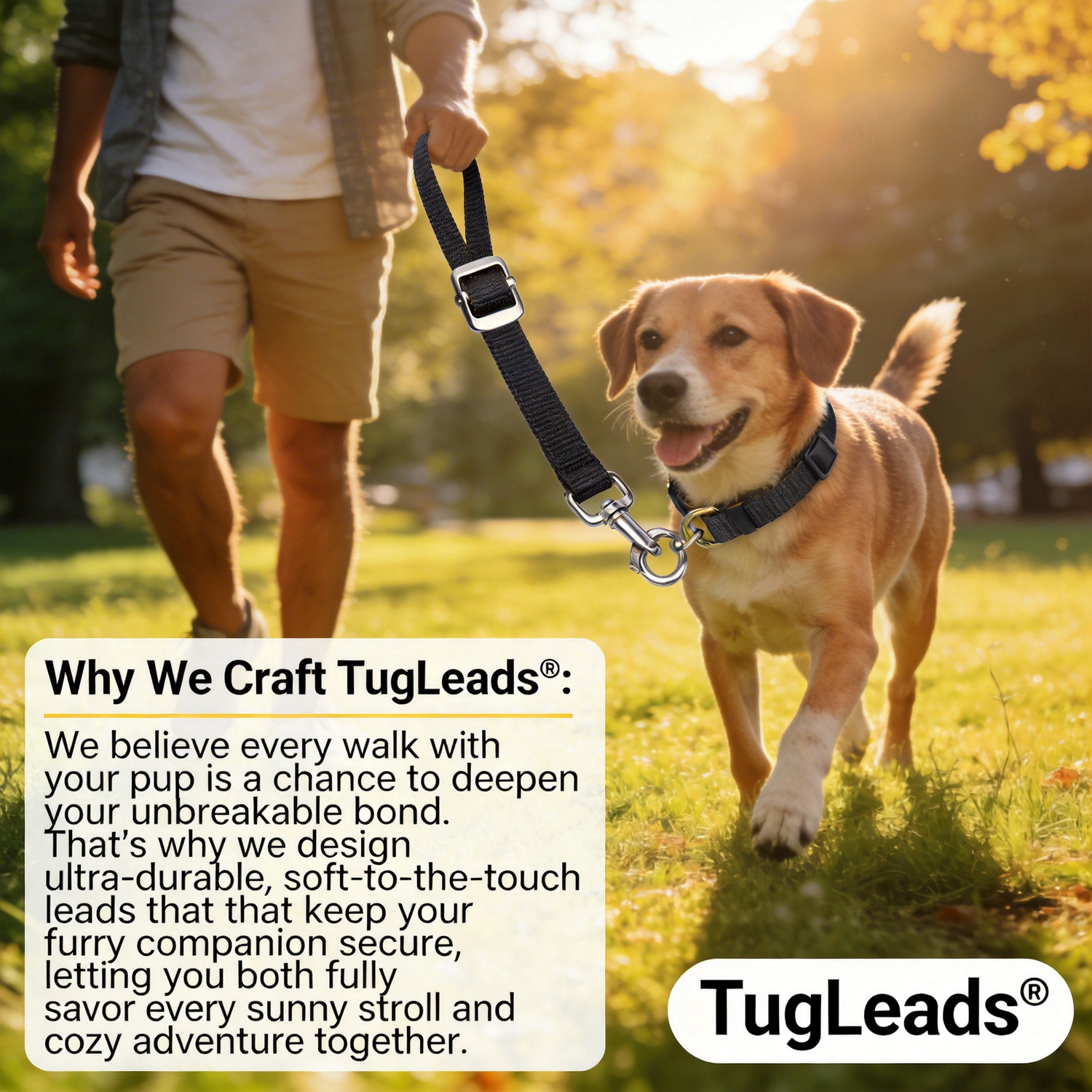 āWhy We Craft TugLeadsĀ®: We believe every walk with your pup is a chance to deepen your unbreakable bond. Thatās why we design ultra-durable, soft-to-the-touch leads that keep your furry companion secure, letting you both fully savor every sunny stroll and cozy adventure together.ā
